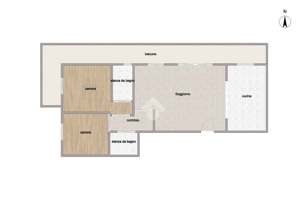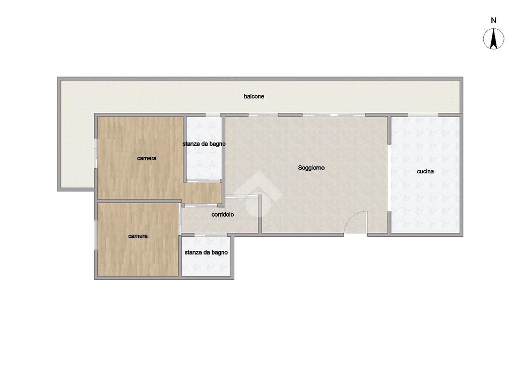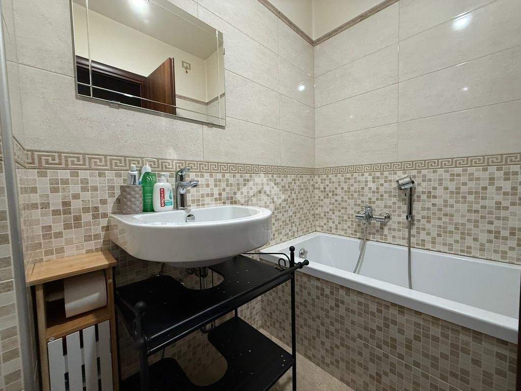 L’immobile, posto al quinto piano di uno stabile servito da ascensore, accoglie con un ingresso su un’ampia e luminosa zona cucina-soggiorno, pensata per offrire convivialità e praticità nella vita quotidiana. La zona notte si sviluppa con due camere da letto, di cui una con bagno privato, perfetta per garantire maggiore riservatezza e comodità. Il secondo bagno, dotato di vasca, completa la distribuzione interna con funzionalità ed equilibrio.
